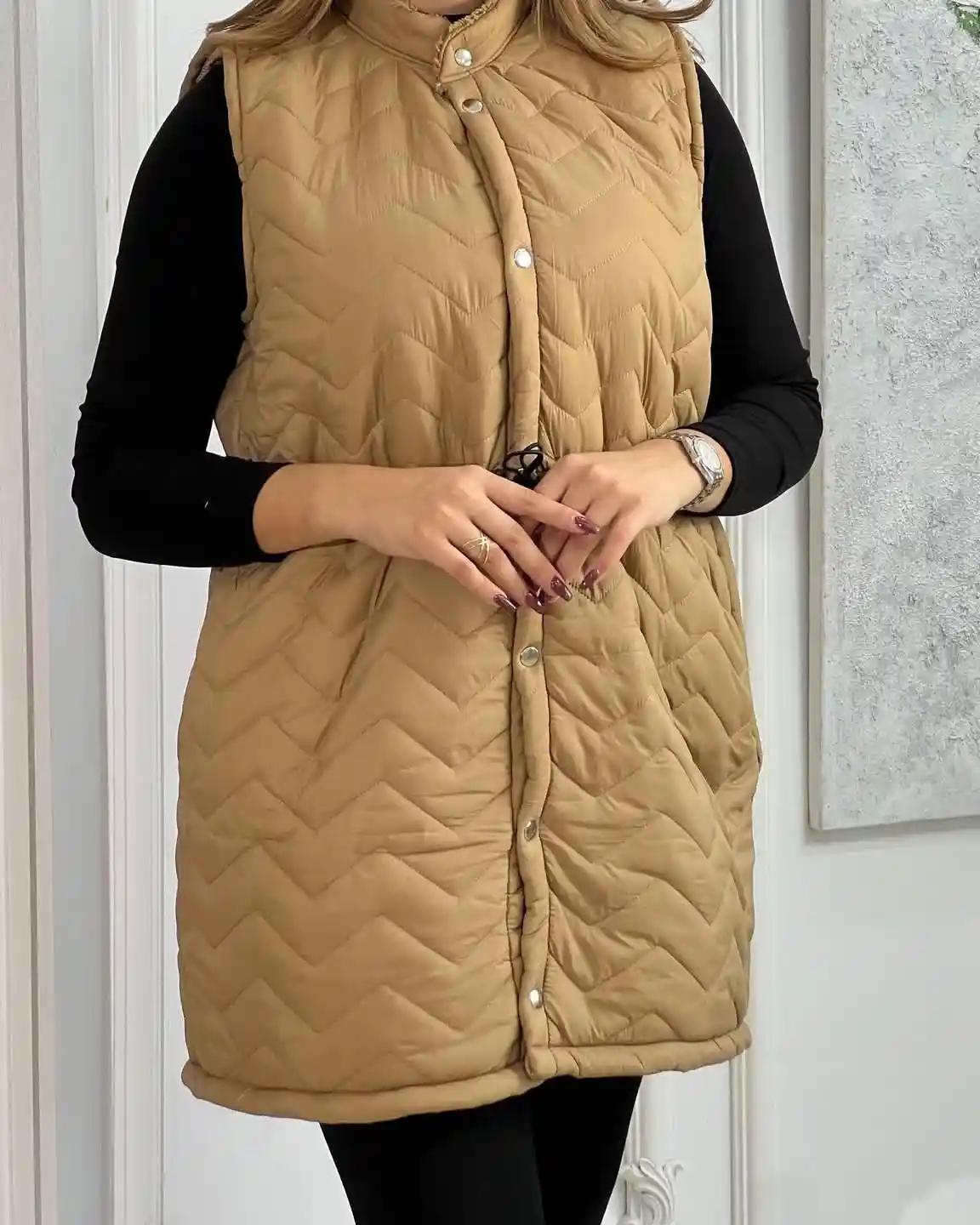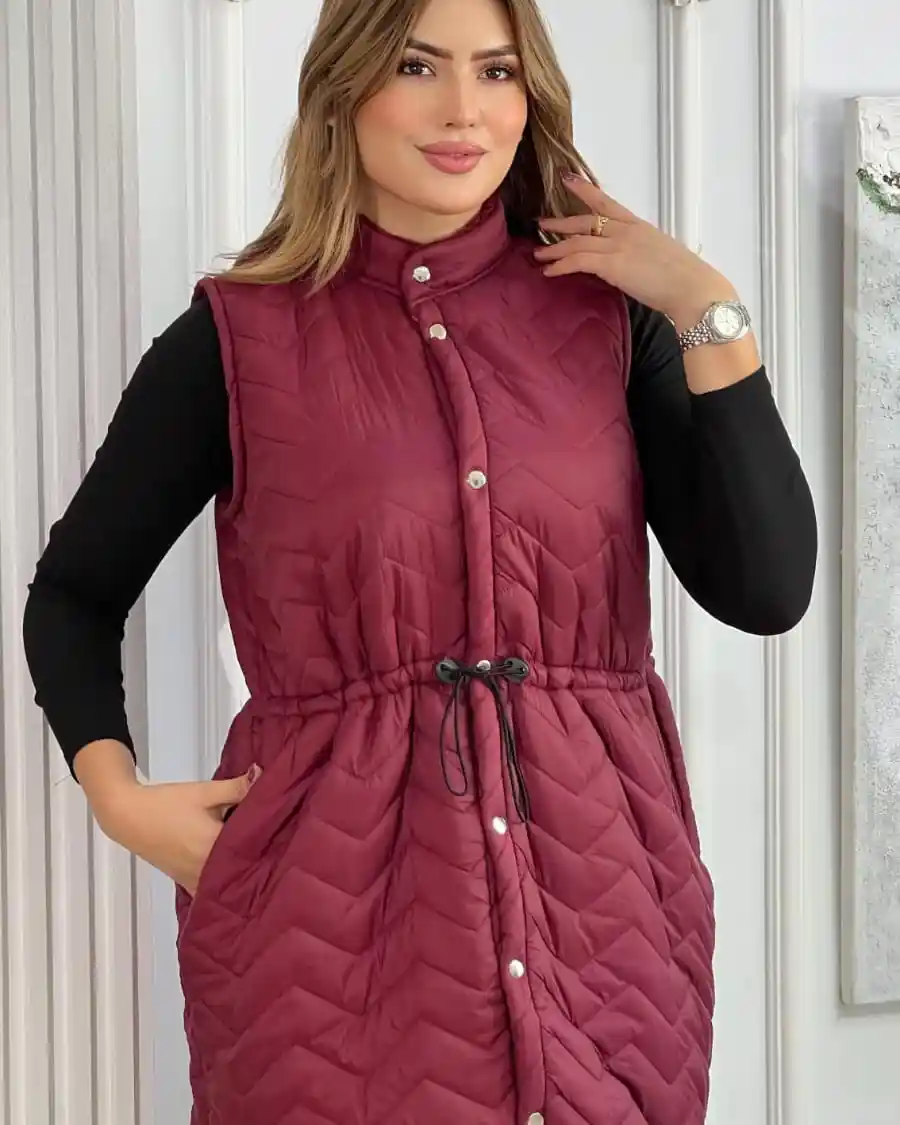Son design matelassé, sa coupe droite et son lien à la taille mettent la silhouette en valeur tout en assurant un confort optimal
