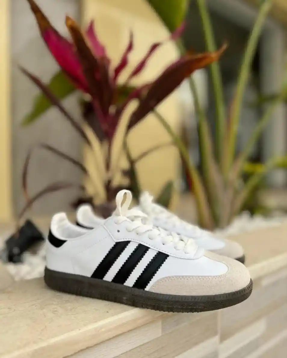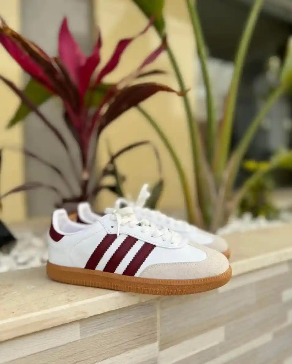 Leur tige blanche, leurs bandes contrastées et leur semelle en gomme offrent un équilibre parfait entre allure moderne et confort durable.