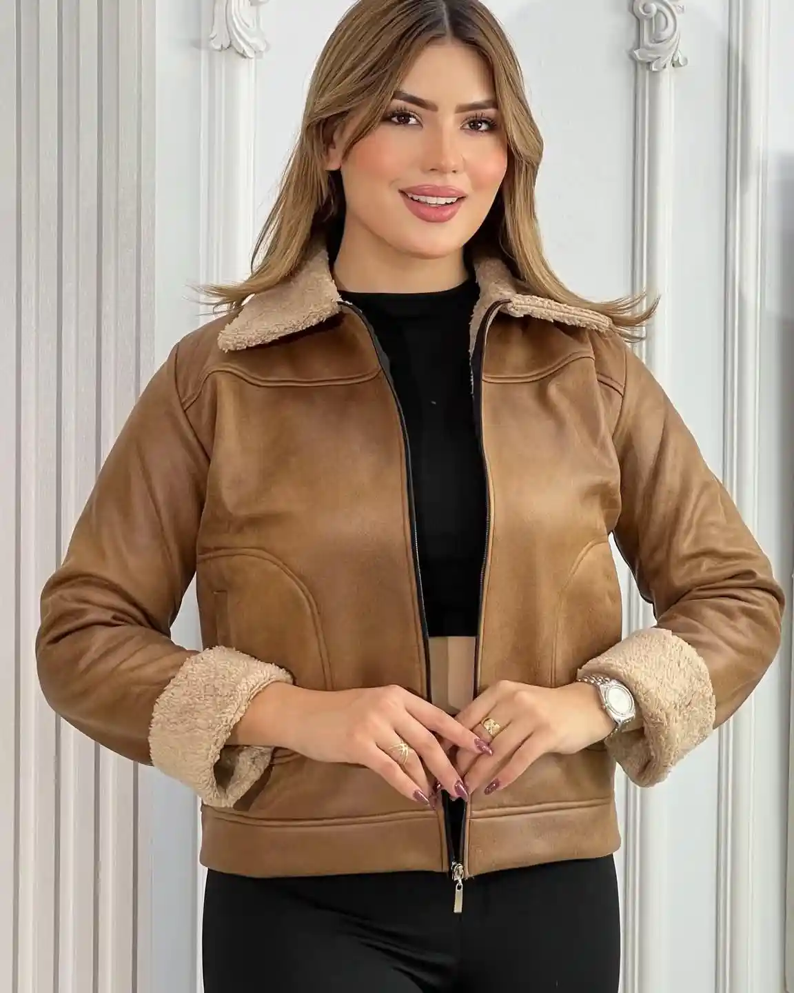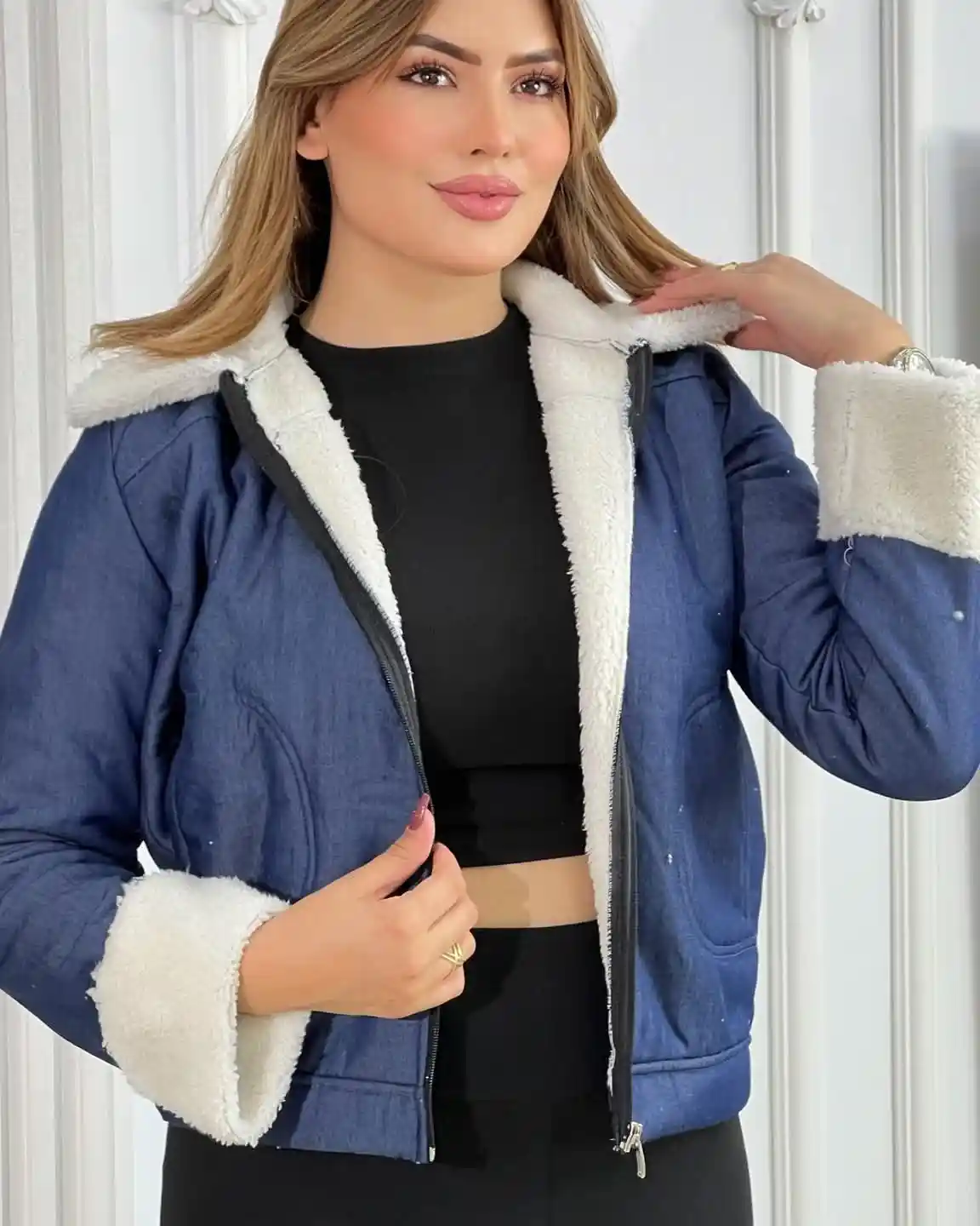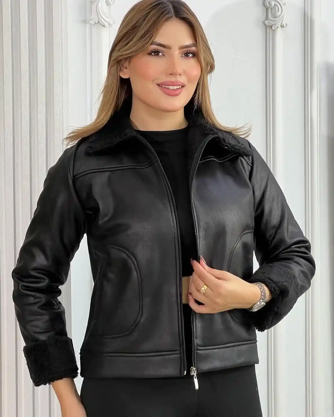 ✔️ Détails : col et poignets en fausse fourrure, zip avant, poches latérales